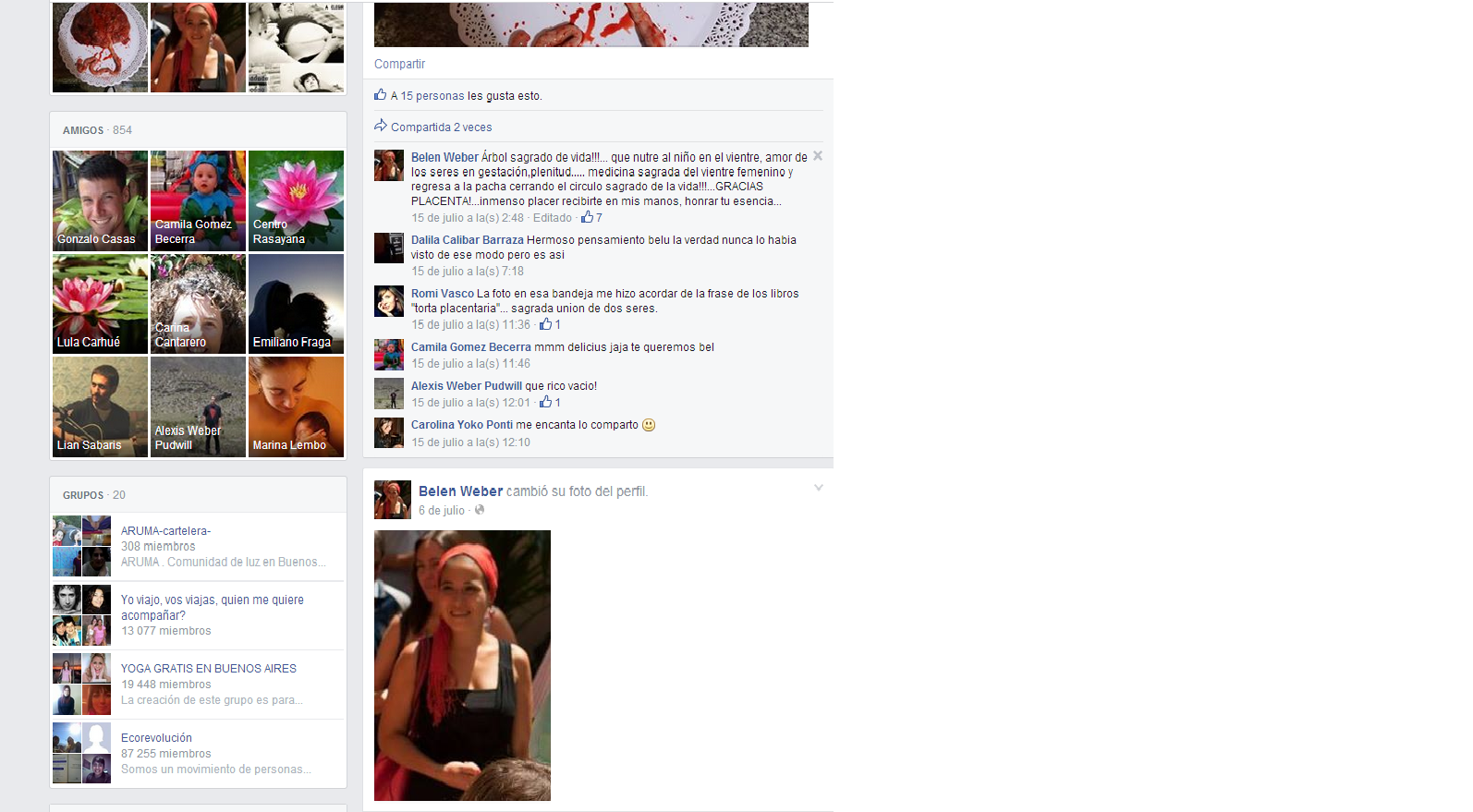 Aqui el perfil de Belen Weber desde el cual se puede apreciar las doctrinas y grupos a los cuales pertenece y las practicas que promociona.