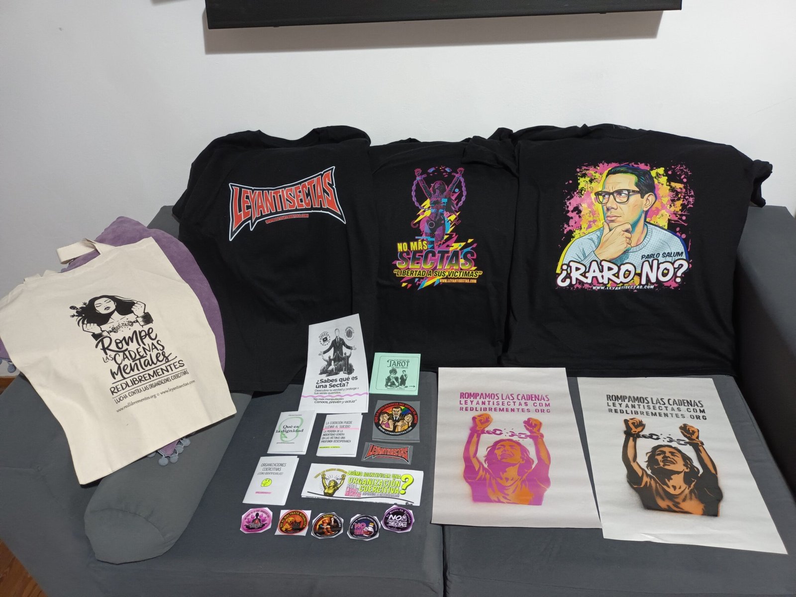 No puedo creer que por fin tenemos las remeras de Ley AntiSectas 😍 todo bien hacen acá!!! Muy feliz de poder lucir con orgullo este logo nuevo, usarla mientras voy pegando stickers en lugares estratégicos… todo te llena de coraje y alegría, te hace olvdar un poquito la bronca que da que existan tantas organzaciones dedicadas al mal… la existencia y participación en la Red Librementes y Ley AntiSectas siempre lo compensa!