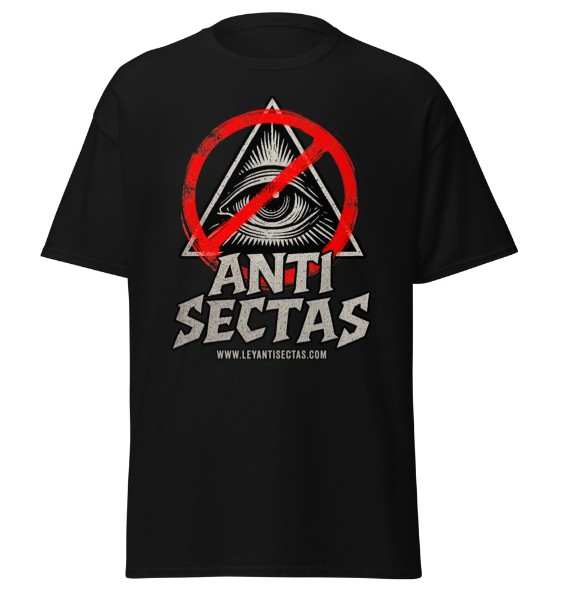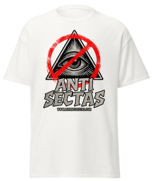 Esta camiseta es más que moda; es un emblema de la lucha por la verdad y la libertad. El diseño ‘ANTI SECTAS’ de LeyAntiSectas toma un poderoso símbolo de control (el ojo en la pirámide) y lo barra con una señal de prohibición roja, declarando un rechazo absoluto a la vigilancia coercitiva y a las ideologías manipuladoras. Es una declaración visual fuerte y minimalista que proclama la oposición organizada contra las pseudociencias y organizaciones coercitivas «sectas»