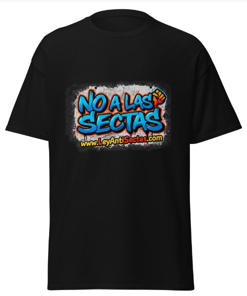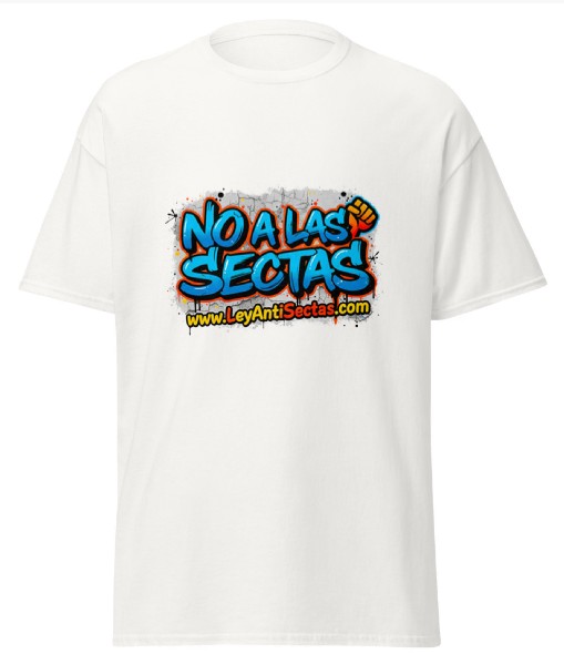 Esta camiseta es más que moda; es un manifiesto urbano de resistencia. El diseño ‘NO A LAS SECTAS’ de LeyAntiSectas utiliza la fuerza visual del graffiti para lanzar un mensaje directo e ineludible. Sobre un muro texturizado, las letras vibrantes y el puño en alto simbolizan el rechazo enérgico y sin tapujos a las organizaciones coercitivas, la manipulación y el abuso. Es una pieza que captura la urgencia de la denuncia social.